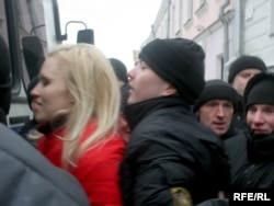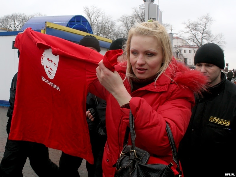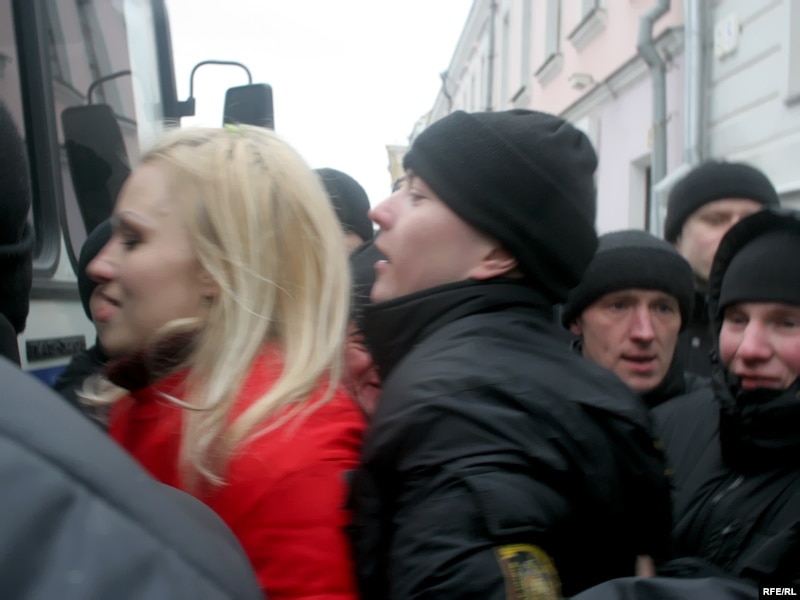 12:49 Вольгу Казуліну, дачку палітвязьня Аляксандра Казуліна, пасадзілі ў міліцэйскі аўтобус на вуліцы Інтэрнацыянальнай. Раней яна выйшла на плошчу з расьцяжкай: "Свабоду ІП".