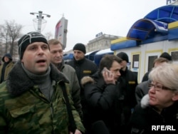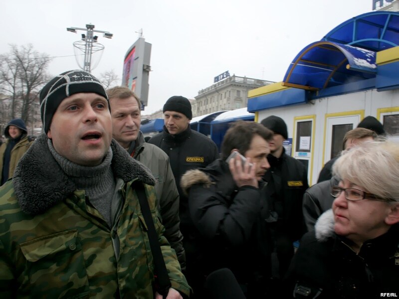 12:05 На плошчы Перамогі людзі ў цывільным затрымалі кіраўніка руху "За Свабоду!" Аляксандра Мілінкевіча. Яго запхнулі ў міні-аўтобус і павезьлі ў невядомым кірунку.