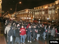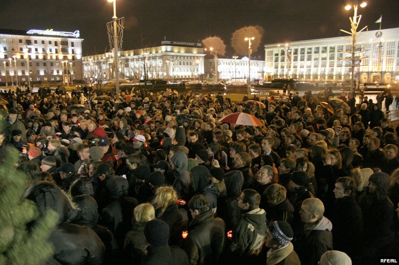 Людзі дайшлі да плошчы Незалежнасьці. Адзін з удзельнікаў жалобнай акцыі Мікола Статкевіч сказаў: