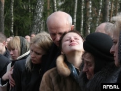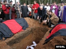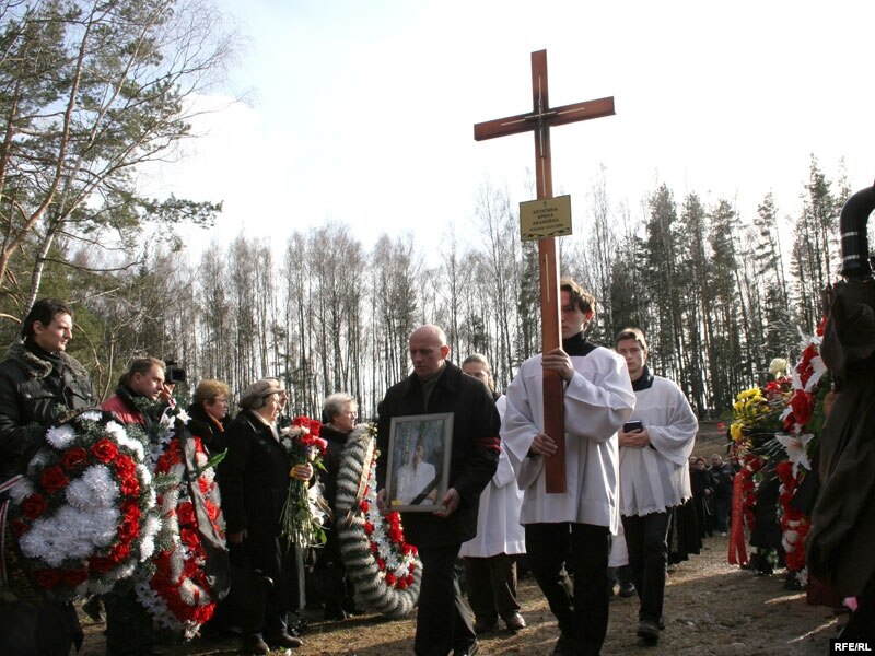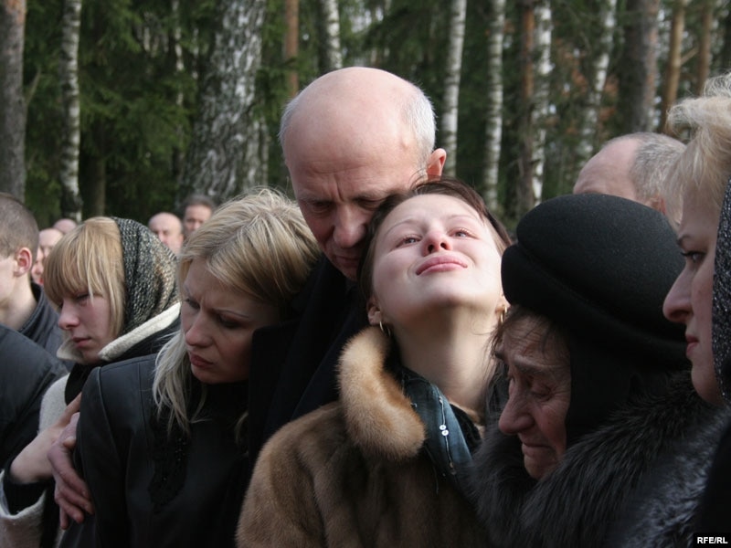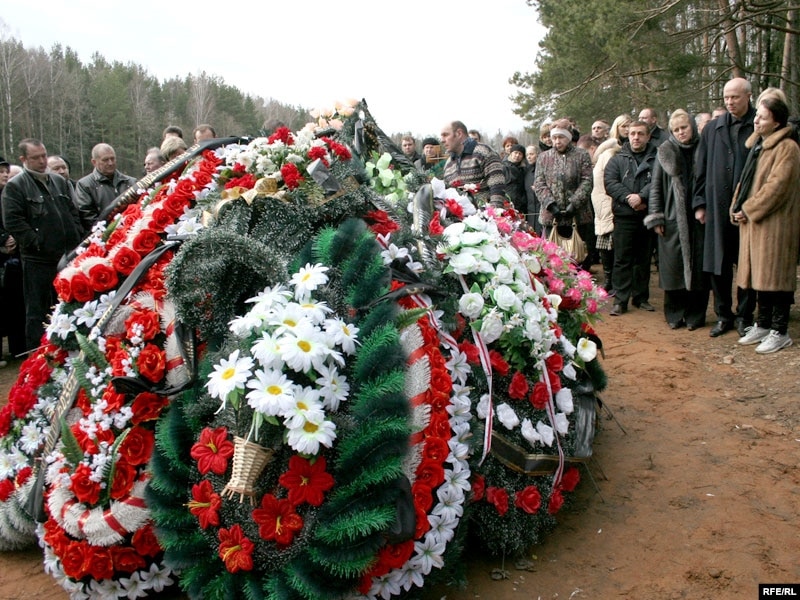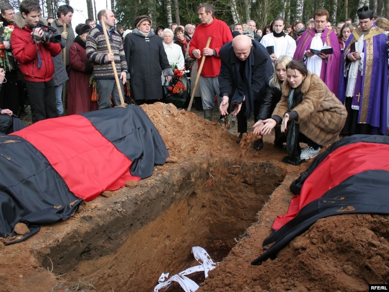 Людзі пачалі кідаць у магілу па тры жмені жоўтай зямлі. Потым узяліся за працу магільшчыкі, і праз 10 хвілін на магіле Ірыны Казулінай была гара кветак і вянкоў.
