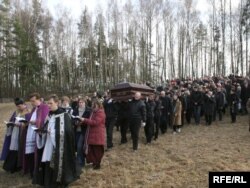 Труну зачынілі і сталі апускаць у дол. “Няхай Усемагутны Бог дасьць табе, сястра наша Ірына, піць з крыніцаў жыцьця вечнага”, — пад гэтыя словы ксяндза Ўладзіслава Завальнюка труну апусьцілі ў магілу.