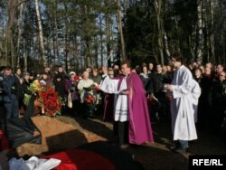 Тут лёс вызначыў знайсьці апошні прытулак Ірыне Казулінай, зь якой прыехалі разьвітацца некалькі соцень чалавек. Пад сьпевы касьцельнага хору труну вынесьлі з катафалку. Пасьля некалькіх малітваў ксёндз Уладзіслаў Завальнюк прапанаваў сказаць пра Ірыну Казуліну разьвітальнае слова.
