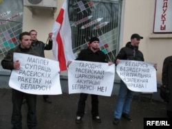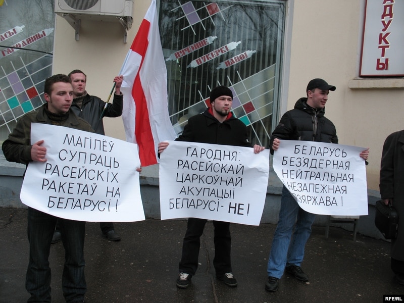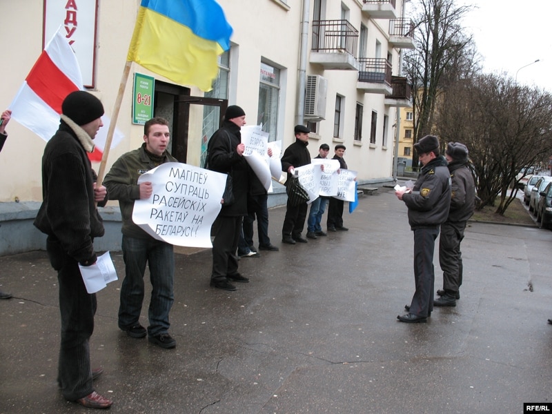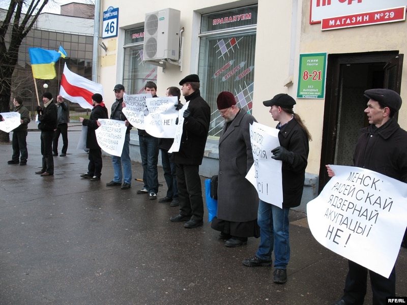 Каля дзесяці чалавек зь бел-чырвона-белым сьцягам утварылі ланцуг перад расейскай амбасадай. Яны трымалі плякаты: “Не дапусьцім расейскай атамнай зброі на Беларусі!”, “Расейскай ядзернай акупацыі Беларусі – НЕ!”, “Свабоду Беларускай Аўтакефаліі!” і іншыя.
