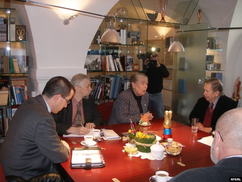 "Сустрэча была надзвычай цікавая і прыемная. Спадар Гавэл, як заўсёды, паказаў, які ён вялікі сябра Беларусі. Яго цікавіла ўсё, што робіцца ў Беларусі, ён прасіў нас распавесьці пра гэта. І безумоўна пытаўся -- чым можна дапамагчы дэмакратычнаму руху, дэмакратычнай Беларусі. Першая рэч, пра якую мы яго прасілі -- гэта як-небудзь зьнізіць цэны візаў для беларусаў у Эўропу. Мы ўважаем гэта, як сапраўдную "жалезную заслону" між Беларусьсю і Эўропай. Ён цалкам згадзіўся з такой ацэнкай і сказаў, што будзе рабіць усё магчымае. Магчыма, Чэхія будзе першай краінай, якая зьнізіць гэтыя кошты".