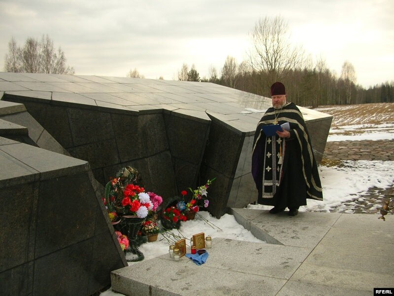 На месцы, дзе карнікі катавалі людзей, зладзілі малебен. За душы загінулых маліўся сьвятар Беларускай Аўтакефальнай царквы айцец Леанід Акаловіч.