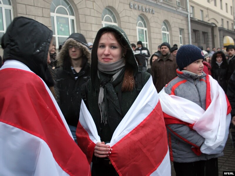 18.00 Моладзевыя актывісты дасталі бел-чырвоныя сьцягі, чуваць воклічы "Жыве Беларусь!" Колькасьць людзей цяжка падлічыць.Міліцыянты затрымалі моладзевых актывістаў Станіслава Стэсіка, Алеся Каліту і Мікіту Краснова.