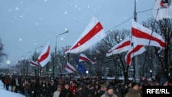 Каля Акадэміі навук сабралася 200 чалавек з расьцяжкамі “Свабоду Казуліна” і сьцягамі.