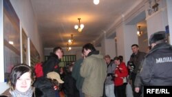 11.00 У Партызанскі суд прывезьлі 5 чалавек. Гэта Артур Фінькевіч, Кася Галіцкая, Кацярына Салаўёва, Уладзімер Сяргееў і яшчэ адзін малады хлопец, імя якога пакуль невядомае. У Фінькевіча моцна зьбітае левае вока і ўся левая частка твару. Усе яны запатрабавалі адваката – Сьвятлану Гарбаток, якая абараняе Сяргеева.