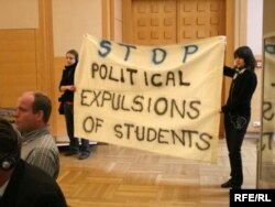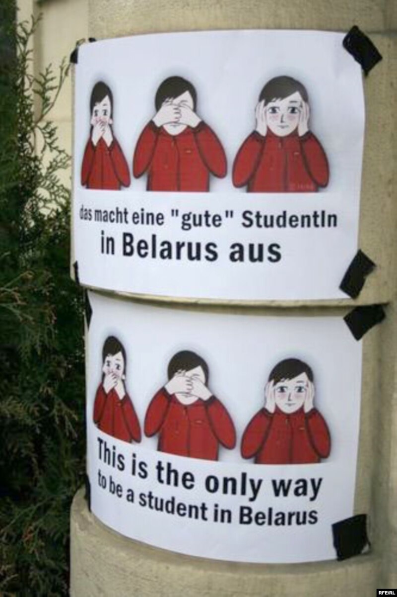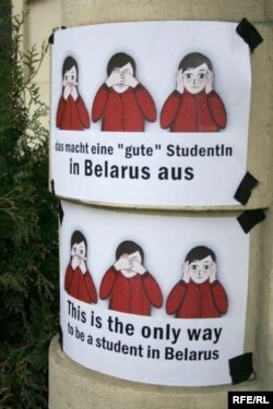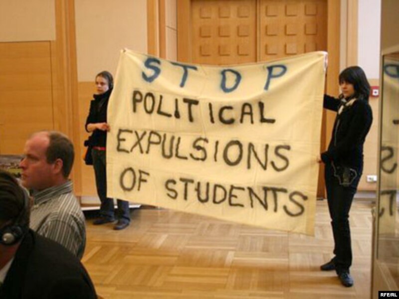Студэнты стаялі з плякатам “Спыніць палітычна матываваныя выключэньні” і карыкатурамі.