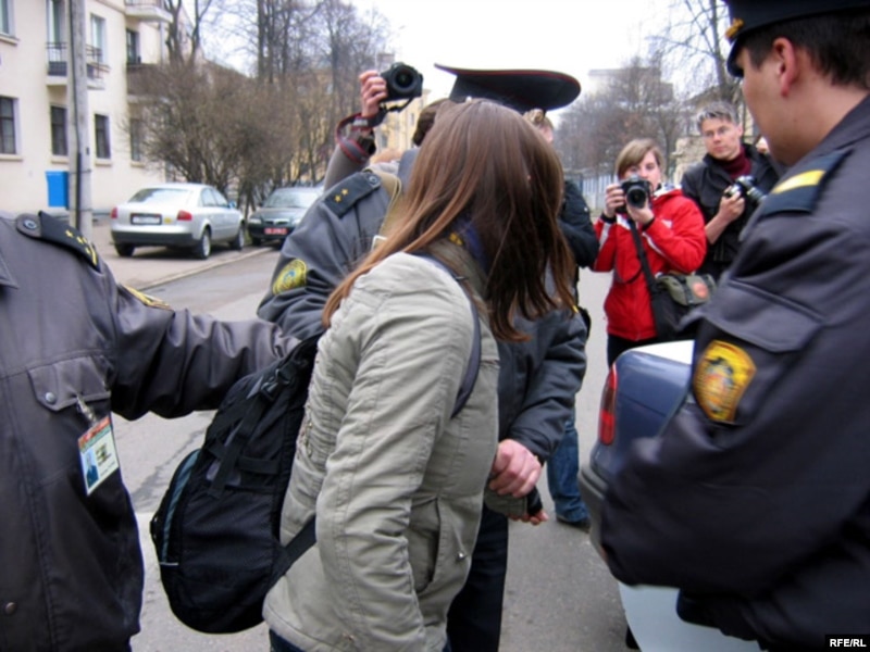 Ахоўнік, які заўважыў групу маладых людзей, выклікаў міліцыянтаў, і на трох машынах тыя прыехалі да будынку амбасады. У адной з машынаў міліцыянты мелі з сабой зброю. Яны схапілі двух дзяўчат, Паліну Кур'яновіч і Паліну Дзьякову, астатнім удалося адысьці на вуліцу Багдановіча. Магчыма, дзяўчат могуць абвінаваціць у дробным хуліганстве, як звычайна было дагэтуль у час такіх пікетаў.