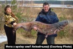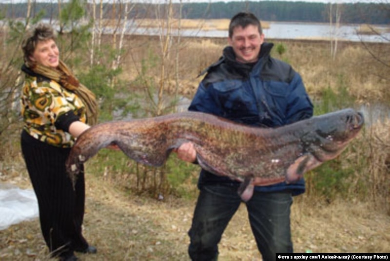 “Кажа, не магу, не хапае сіл цягнуць, такі здаровы. Ну тут ужо я і яе за шыварат пацягнуў, і там гэты сом пайшоў праз борт лодкі цягнуцца. Здаваўся бясконцы, мэтар 80 даўжыня. На ўсю лодку. Ну, і хутчэй на яго пападалі, каб ня выскачыў, не пачаў буяніць. Атрымалася, жонка зьнізу ляжыць, на ёй гэты сом, нагамі яго абхапіла, рукамі. Я яго за жабры, за нос прытрымліваў адной рукой. І хутчэй на маторы да берагу, пакуль скакаць не пачаў. За такой рыбінай паляваў некалькі гадоў і не атрымлівалася. А тут...”