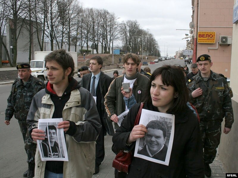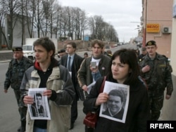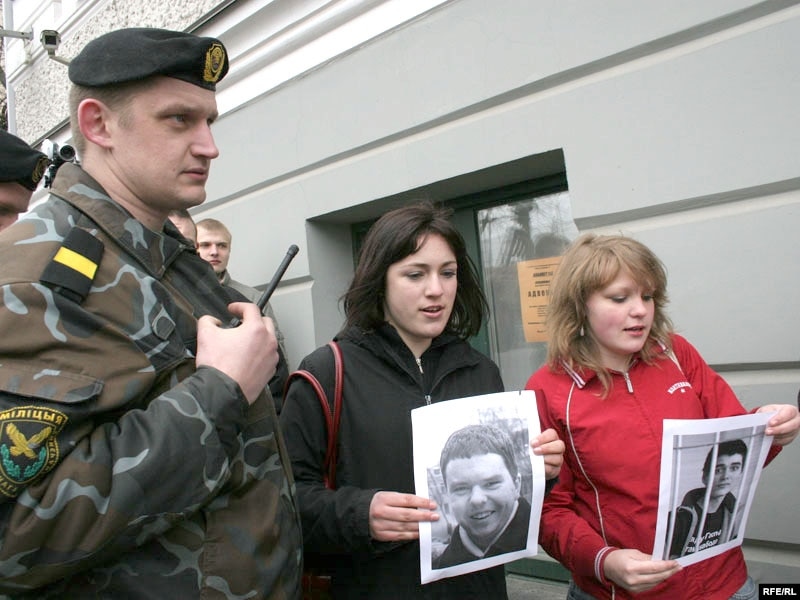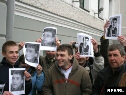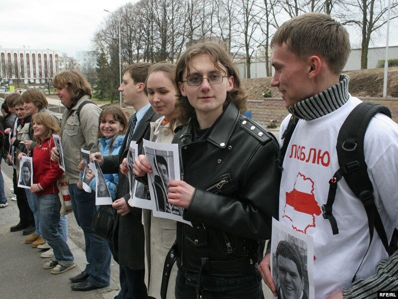 Моладзь трымае партрэты падсудных