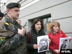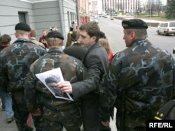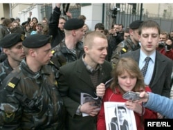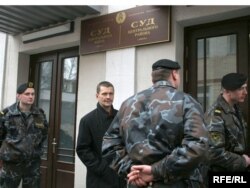 Зьмітра Дашкевіча і Артура Фінькевіча адціскаюць ад будынку суду