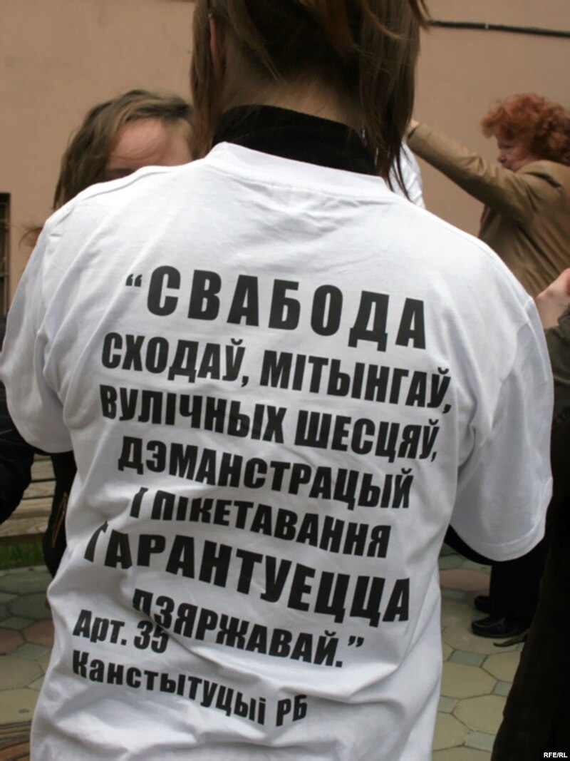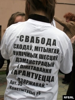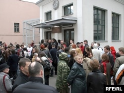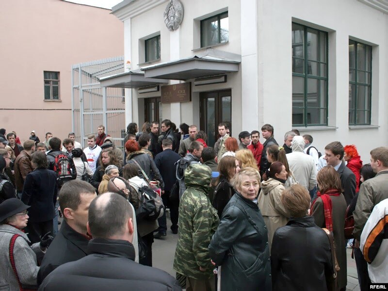 Прысутныя ля будынку суду пішуць агульнанацыянальную дыктоўку