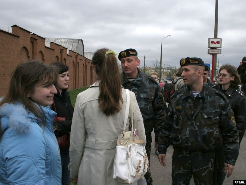 Спэцназ выціскае моладзь у раёне вуліцы Кастрычніцкай