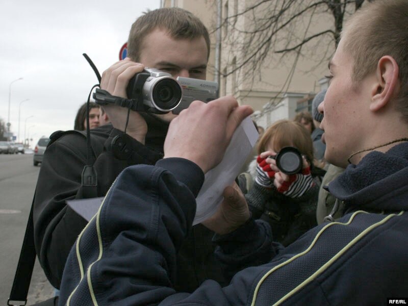 Сярод тых, хто прыйшоў на суд, актывісты Маладога фронту Зьміцер Хведарук і Каця Салаўёва. Раней іх судзілі за ўдзел у незарэгістраванай арганізацыі