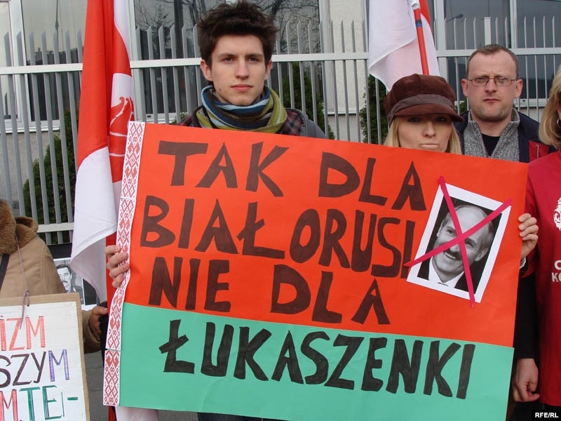 Некалькі беларусаў, якія жывуць у Варшаве, прыйшлі да будынку пасольства Беларусі з нацыянальнымі бел-чырвона-белымі сьцягамі і партрэтамі зьніклых палітыкаў, палітвязьняў. Да іх далучыліся таксама двое палякаў з намаляваным на картоне цяперашнім афіцыйным сьцягам Беларусі, на якім было напісана “Беларусь – так, Лукашэнка – не”.