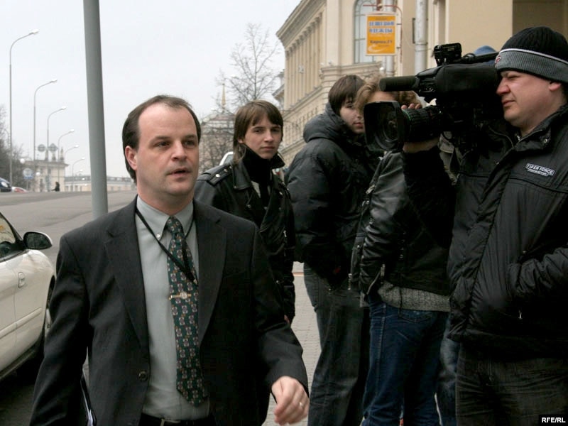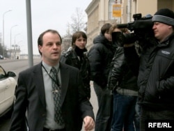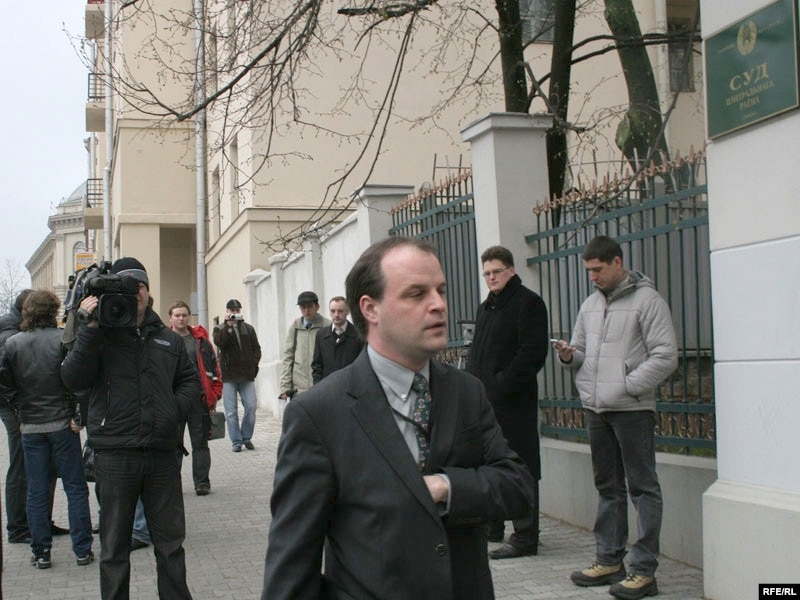 Юрыст Ігар Леднік размаўляе з падсуднымі