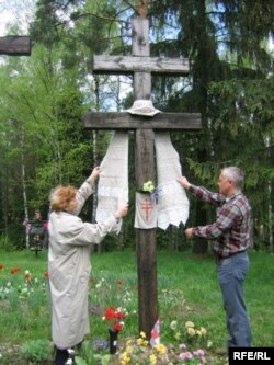 Вольга і Дзьмітры Шаблінскія ўсталявалі крыж сваім дзядам
