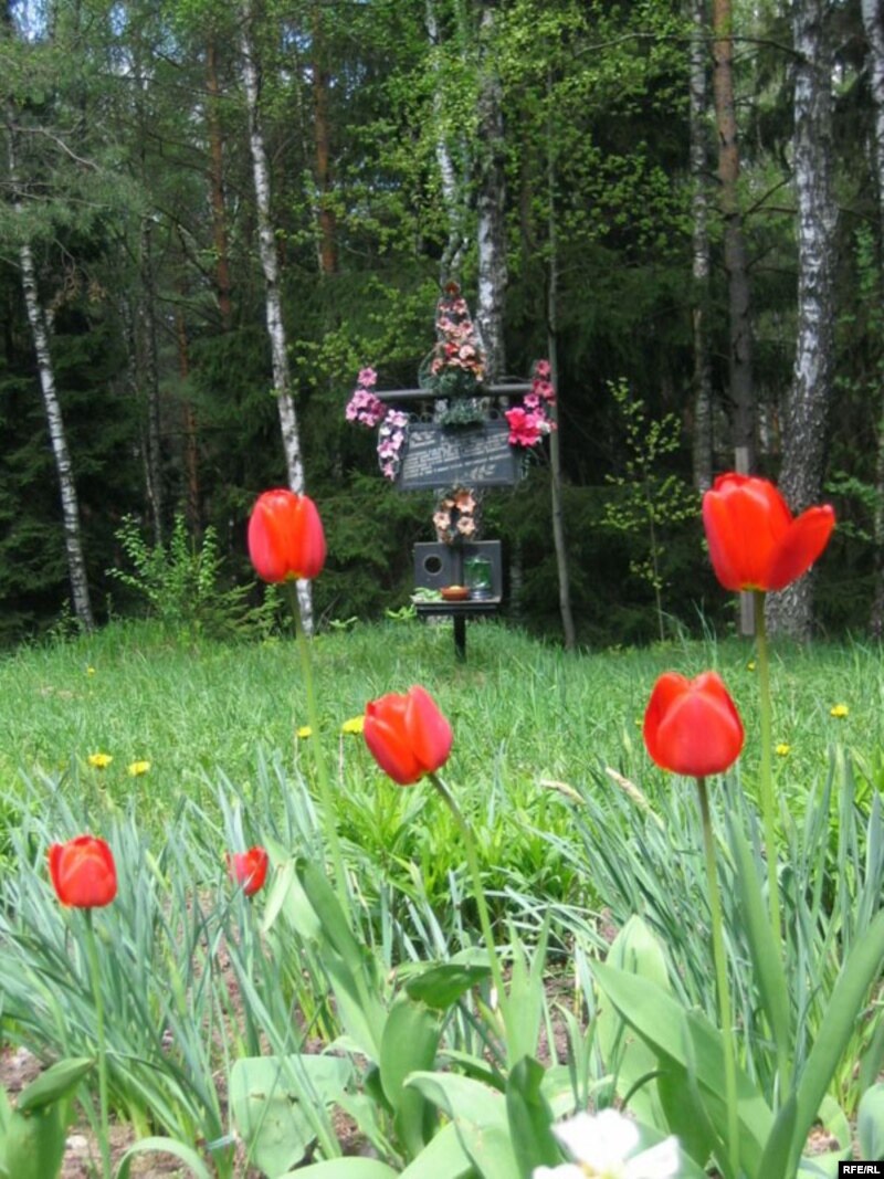 Дзьмітрый і Вольга Шаблінскія ўсталявалі ў Курапатах крыж сваім родным, расстраляным тут 7 сакавіка 1938 году. Прыйшлі зь вялікім ахапкам чырвоных тульпанаў, паклалі кветкі на лаву Клінтана, каля вялікага сямімэтровага Крыжа Пакуты, астатнія панесьлі да свайго крыжа.