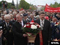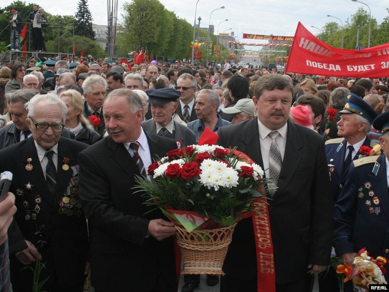 Прыблізна ў 12.40 пачаўся выступ Аляксандра Лукашэнкі, якія працягваўся каля 10 хвілінаў. Сярод іншага, прэзыдэнт Беларусі сказаў: "Сёньня ёсьць нямала чыньнікаў, якія могуць прывесьці да ўспышкі новага пажару вайны. Асобныя краіны, якія ўявілі сябе звышдзяржавамі, гатовыя ўмешвацца ва ўнутраныя справы іншых дзяржаваў і нават прымяняць узброеную сілу... Узрастае актыўнасьць блёку НАТА, туды ўступаюць былыя сацыялістычныя краіны... Спробы дыктату і эканамічнага шантажу не раз прадпрымаліся і ў дачыненьні да Беларусі. Але ніхто не прымусіць нас збочыць з абранага шляху..”.