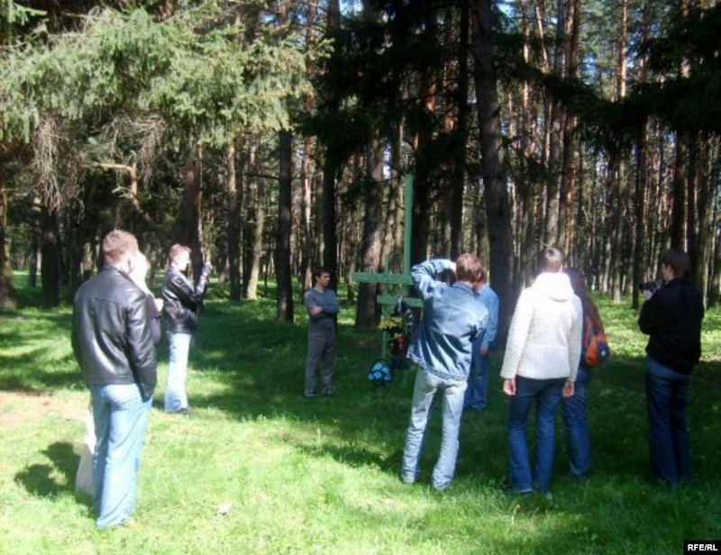 Ля памятнага знаку, на месцы сымбалічнага пахаваньня Цішкі Гартнага актывісты ўпарадкавалі тэрыторыю, правялі невялікі мітынг ды ўсклалі вянок.