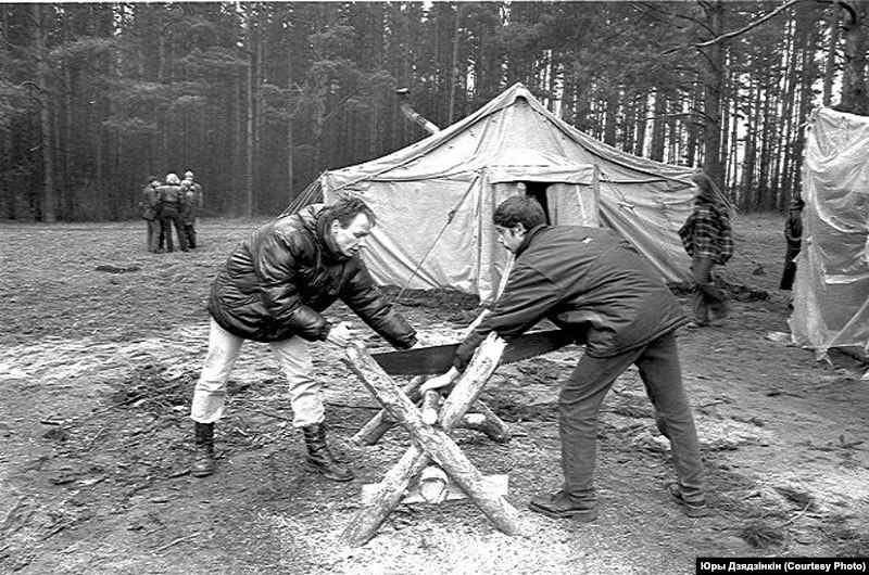 На фота №50 зафіксаваны, так бы мовіць, рабочы працэс штодзённага існаваньня на дзяжурстве маладзёвых змагароў з аўтастрадай. Усе здымкі – унёсак у гісторыю Народнага Мэмарыяла Курапаты.