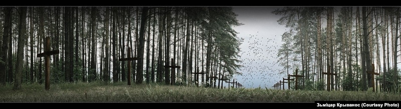 Наступная панарама Зьміцера Крываноса (назавём яе ўмоўна “Курапаты -- птушкі”) бадай што найлепшы здымак з гэтай ягонай сэрыі. Тут дасягнута адначасна дакумэнтальна-адэкватнае і мастацка-вобразнае ўяўленьне пра Курапаты. Клясычна пабудаваная кампазыцыя, дынаміку пэрспэктывы якой надае рытм крыжоў паабапал пэрспэктыўнага раскрыцьця, якое вельмі ўдала зачыненае зграяй далёкіх птушак. (Добрая ўдрукоўка і правільна знойдзены маштаб птушак – яны вельмі далёка). Глыбіню карціны і настраёвае “дыханьне” панараме якраз і надаюць гэтыя далёкія птушкі. У фотакарціне ўзьнікае шчымлівы падтэкст і сувязь з тыпалёгіяй беларускіх могілак. Здымак лепш успрымаецца ў каляровым варыянце, бо эмацыйную нагрузку тут нясе таксама блакітна-фіялетавая далячынь, на фоне якой лятуць птушкі.