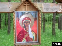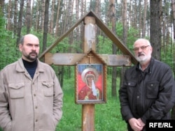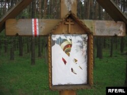 “Ужо трэці раз мы займаемся тым, каб неяк аднавіць гэтую каплічку. Тое, што зрабілі вандалы, гэта, канечне, уражвае настолькі. І мы думаем з маім сынам Ігарам зрабіць плякат, якраз прысьвечаны Курапатам. Бо вандалы, калі абрывалі гэтую выяву, то нейкім чынам засталося вока Маці Божай і сьлёзы. Гэта так сымбалічна. Гэта вобраз пакутаў і вобраз плачу. Але сёньня мы знаходзімся ў Курапатах і мы адновім гэтую каплічку і будзем спадзявацца, што, можа, усё ж такі ў тых, хто робіць такую чорную справу прачнецца сумленьне. Бо для нас Курапаты, як для палякаў Катынь. Гэта месца нявінна расстраляных”.
