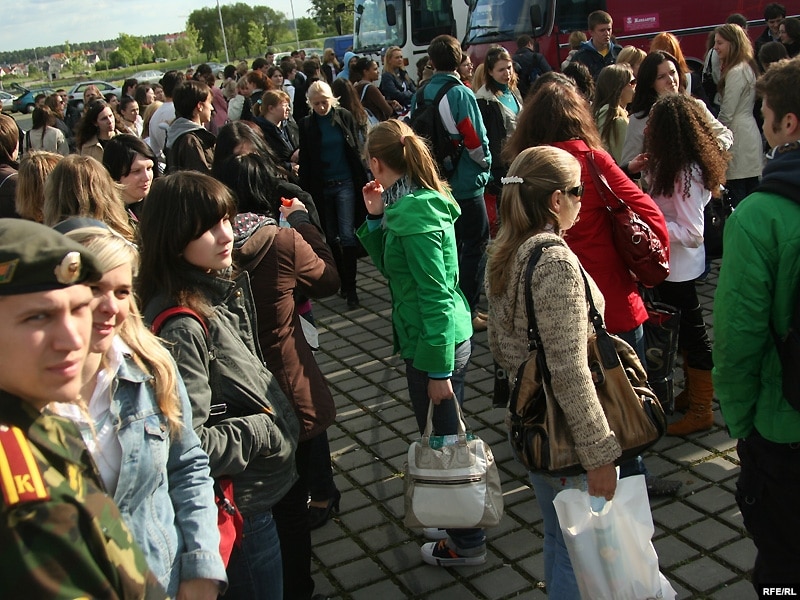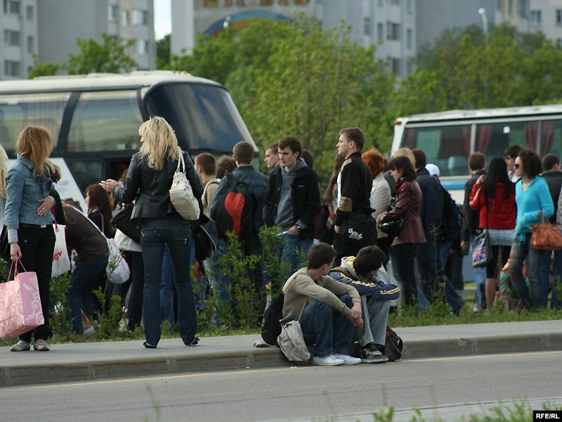 А 7-й вечара калёна зь дзесяці аўтобусаў са студэнтамі накіравалася ў Маскву. Бацькі, якія праводзілі сваіх дзяцей, крыху яшчэ затрымаліся, каб паразмаўляць. Паміж сабой яны абмяркоўвалі сытуацыю, калі з-за палітыкі дзяржавы беларускія грамадзяне вымушаныя ехаць у іншыя краіны па замежныя візы.