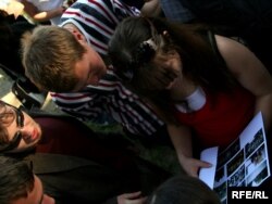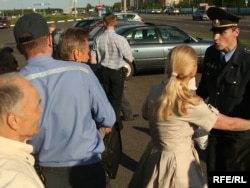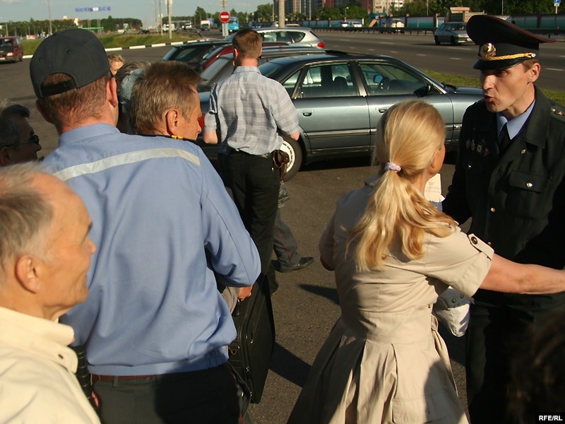 Жанчына спрабуе не даць міліцыянту затрымаць Юрыя Беленькага