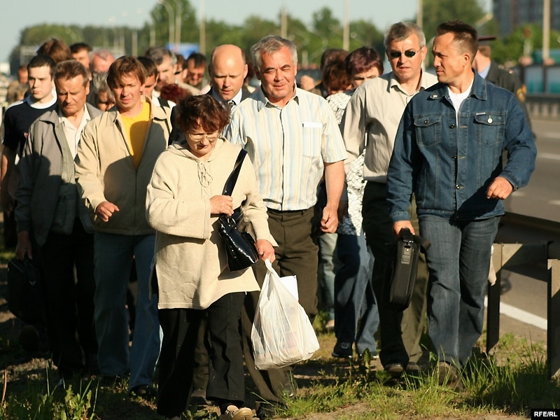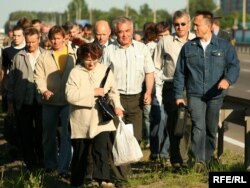 Людзям не дазволілі пакінуць Курапаты праз падземны пераход, яны ідуць узждоўж кальцавой дарогі