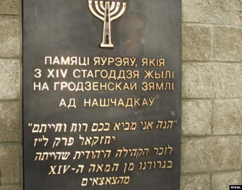 Улады ад пачатку настойвалі на сваім варыянце, і ўсе мусілі пагадзіцца. Па-першае, улады адмовіліся павесіць шыльду на бачным месцы, павесілі на бакавой вуліцы. Па-другое, калі прысутныя на адкрыцьці ўбачылі саму шыльду, яны былі папросту ўражаныя. Яе тэкст ня меў дачыненьня да габрэйскіх могілак, якія былі зьліквідаваныя тут у хрушчоўскія часы. На шыльдзе гэтай напісана: “Памяці габрэяў, якія з ХІV стагодзьдзя жылі на Гарадзенскай зямлі. Ад нашчадкаў". Ізраільскі амбасадар на адкрыцьці сказаў тады літаральна наступныя словы: “Канечне, футбол, лёгкая атлетыка — гэта вельмі важна. Але чаму на касьцях, чаму на праху?”