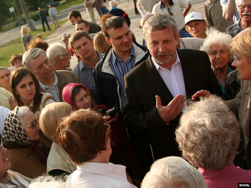 На пляцоўцы каля тралейбуснай дыспэтчарскай сабралася некалькі дзясяткаў чалавек. Яны, перабіваючы адзін аднаго зьвярталіся да лідэра руху “За Свабоду” Аляксандра Мілінкевіча.