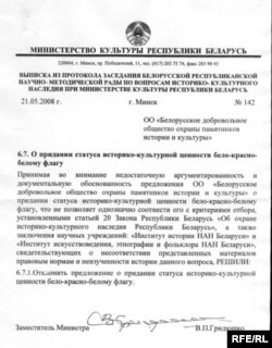 “Калі б Міністэрства культуры прызнала бел-чырвона-белы сьцяг гісторыка-культурнай каштоўнасьцю, рэжым ад гэтага не паваліўся б і не пацярпеў бы ні на ёту”