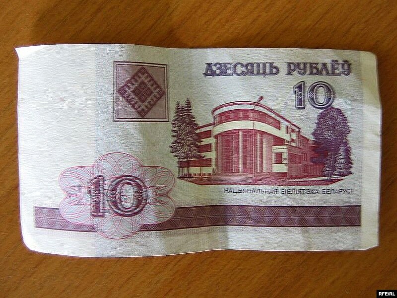 Як адзін з сымбаляў інтэлектуальнай Беларусі Нацыянальная бібліятэка была ўганараваная выяваю на грашовай купюры. Адпаведная праца пачалася яшчэ пры колішнім кіраўніку Нацыянальнага банку Станіславу Багданкевічу. Праўда, цяпер гэта самая дробная разьліковая адзінка — 10 рублёў. Таму, як кажа спадар Багданкевіч, супярэчнасьці паміж магчымым зьнікненьнем бібліятэкі і яе выявай на 10-рублёўцы ня будзе — пакуль узьвядуць навабуд, купюра зьнікне разам зь бібліятэкай: