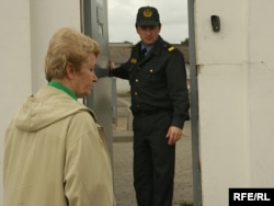 Маці Сяржука Чыслава Галіна перадае сыну перадачу на Акрэсьціна