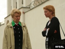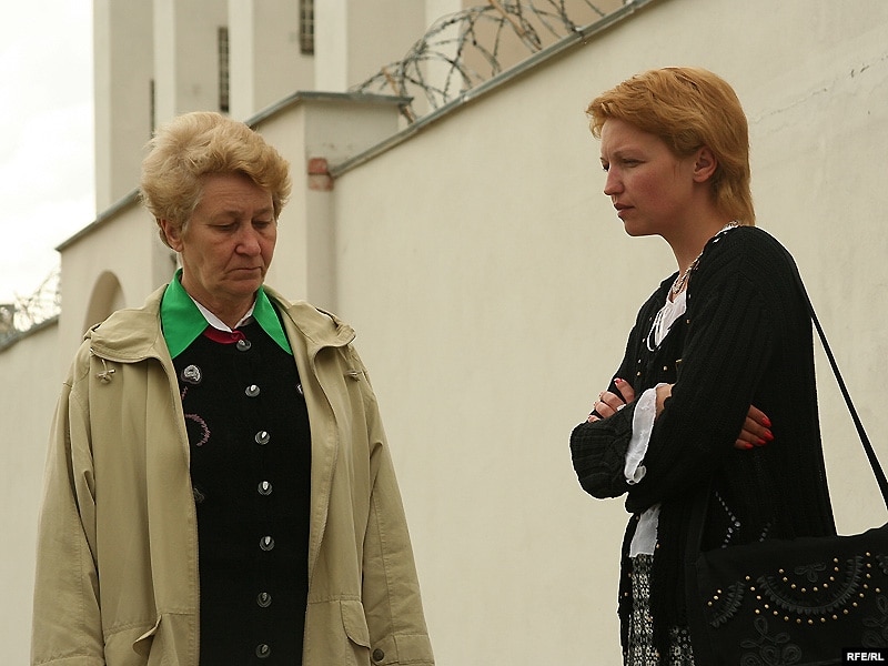 Ніна Шыдлоўская, жонка затрыманага Міраслава Лазоўскага і Галіна, маці затрыманага Сяржука Чыслава каля ізалятара часовага ўтрыманьня на Акрэсьціна