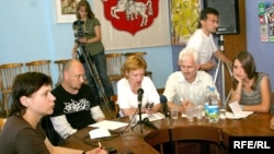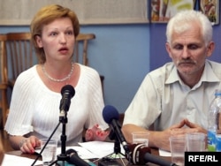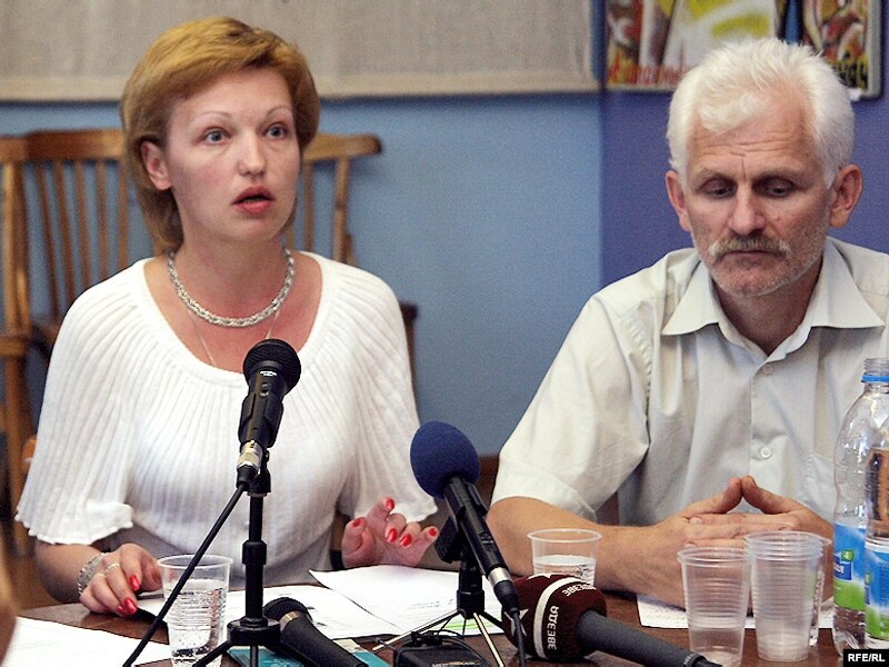 Жонка затрыманага Міраслава Лазоўскага Ніна Шыдлоўская і праваабаронца Алесь Бяляцкі