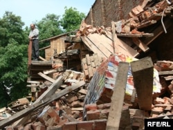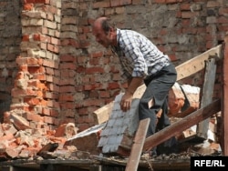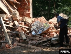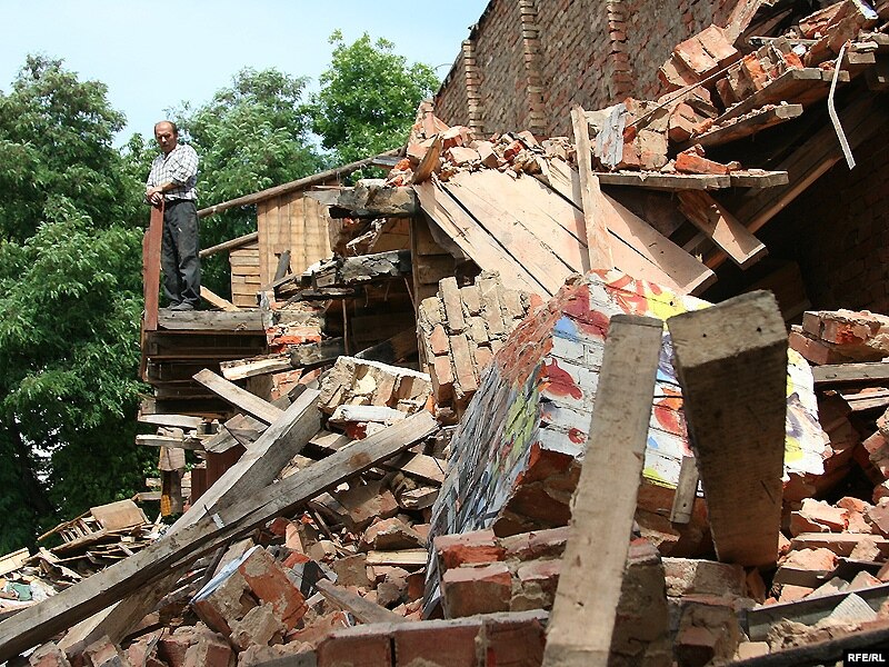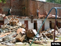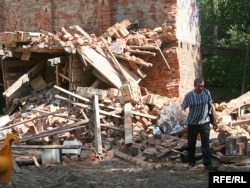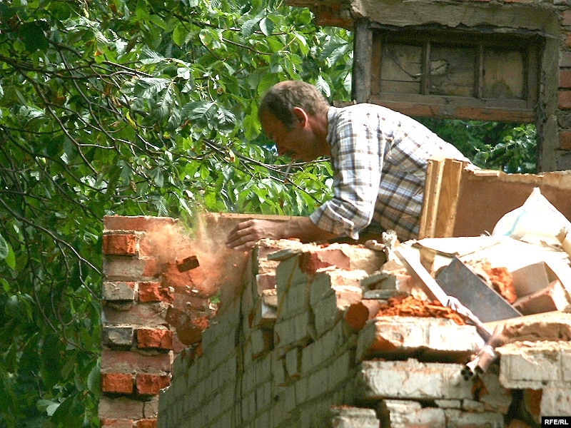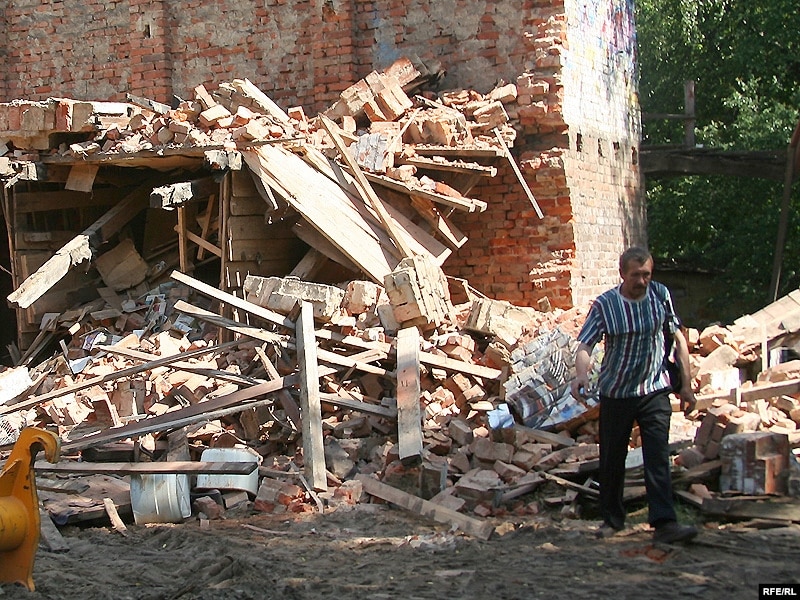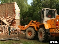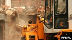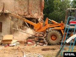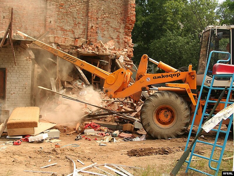 У двары дома нумар 9 па вуліцы Захарава ў Менску (раён плошчы Перамогі) па рашэньні мясцовых уладаў будаўнікі зносяць гаспадарчы будынак, у якім грамадзяне трымаюць свае рэчы.
