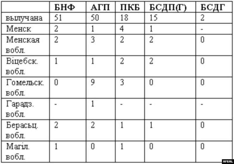 З другога боку, паводле папярэдніх зьвестак, у акруговыя выбарчыя акругі ўлады ўключылі асобных прадстаўнікоў апазыцыі. Да прыкладу, гэта прадстаўнік Партыі БНФ Юрась Меляшкевіч (у ягонай акрузе зьбіраецца балятавацца ў дэпутаты Валянціна Сьвяцкая) і прадстаўнік АГП Яўген Лемеш (у ягонай акрузе балятуецца Аляксандар Дабравольскі).