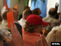 Аднак бальшыня дэлегатаў (а іх зьехалася 76 з 86) запатрабавала ўключыць у парадак дня пытаньне аб пераабраньні партыйнага кіраўніцтва. На пасаду старшыні партыі спачатку вылучылі чатыры асобы. Аднак Алег Трусаў і Мечыслаў Грыб адмовіліся балятавацца. Таму прэтэндэнтаў засталося двое: старшыня партыі Аляксандар Казулін, які знаходзіцца за кратамі, і выканаўца абавязкаў старшыні партыі Анатоль Ляўковіч.