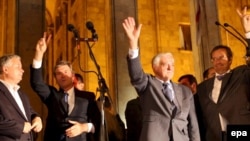 "Мы сёньня прыехалі сюды, каб сказаць такія словы: Грузія – наш сябра. Грузіны – нашыя сябры. Сёньня, у найцяжэйшыя часы для Грузіі, мы кажам, што вы маеце права на свабоду, на незалежнасьць".