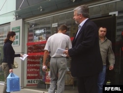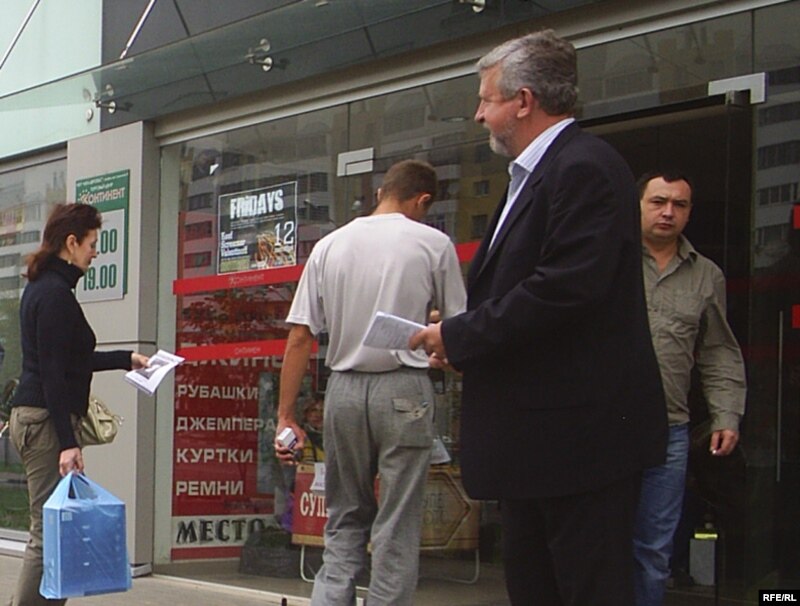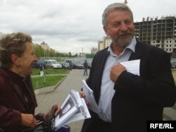 А.Мілінкевіч раздае ўлёткі віцебскім мінакам