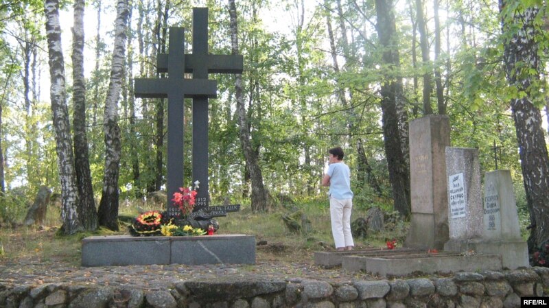 Сапач: Два высокія чорныя крыжы на пагорку, унізе – магіла Максіма Танка і ягонай Любові, ці Лю, як называў паэт сваю музу ў дзёньніках. Замшэлыя зялёныя камяні абапал некалькіх сьціплых помнікаў, на якіх адное прозьвішча – Скурко, і пліта зь вершам самага вядомага з роду Скуркоў: