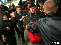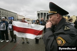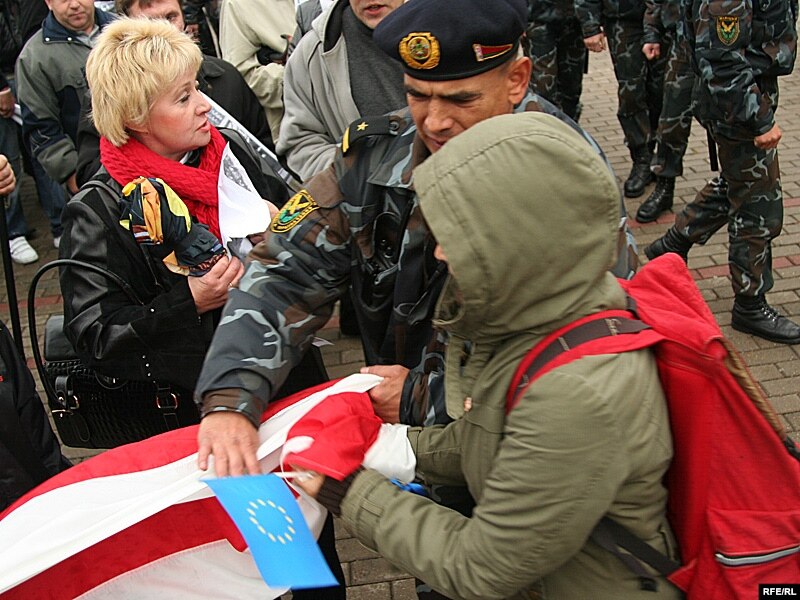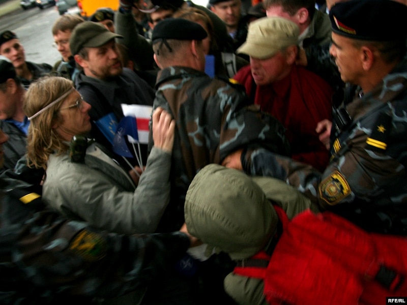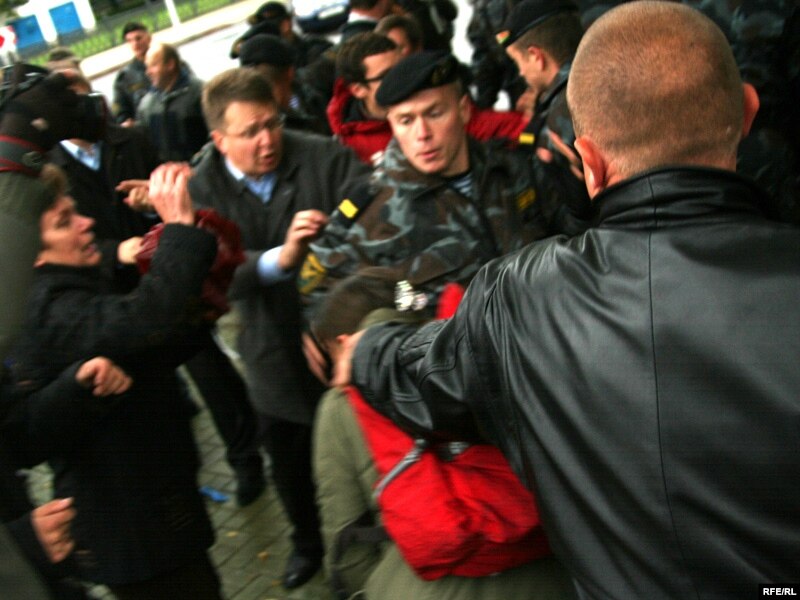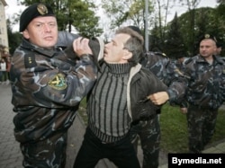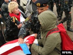 Спэцназаўцы разагналі ўдзельнікаў акцыі салідарнасьці. Некаторыя ўдзельнікі былі зьбітыя.