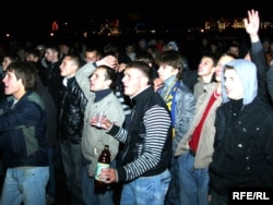 Трансьляцыя пачалася, людзі на плошчы пачалі радасна крычаць, але раптам усё абарвалася і пасьля гэтага пусьцілі рэклямны ролік. Людзі чакалі хвілінаў дзесяць, а потым даведаліся, што трансьляцыя адбываецца на пляцоўцы побач з Палацам спорту. Натоўп людзей кінуўся туды.