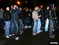 22.30 Людзі заўзеюць за БАТЭ. На некаторых заўзятарах шалікі з сымболікай БАТЭ.