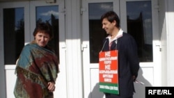 — У мяне быў на шыі плякат з надпісамі “Не — адміністратыўнаму рэсурсу! Не — беспрынцыповай выбарчай камісіі! Закон роўны для ўсіх!” Стаяў я на ганку райвыканкаму, дзе месьціцца акруговая выбарчая камісія. Выйшла сакратарка, спыталася, ці ёсьць у мяне дазвол на правядзеньне акцыі. Я адказаў, што гэта мой мэтад агітацыі і сёньня я маю права агітаваць, — распавёў Яраслаў Берніковіч.