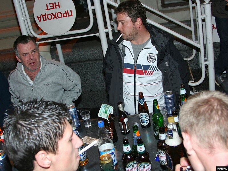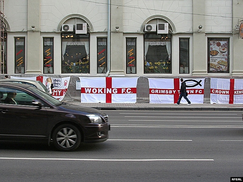 Заўзятары ангельскай нацыянальнай зборнай і брытанскія паліцэйскія сталіся 15 кастрычніка галоўнай адметнасьцю ў цэнтры нашай сталіцы.